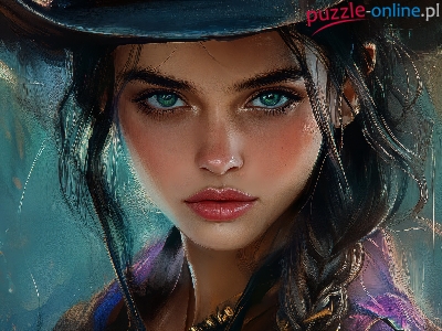 Kapelusz, Warkocz, Dziewczyna, Niebiesko-szare, Grafika, Oczy