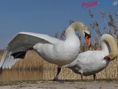 Puzzle Niebo, Dwa, Łabędzie, Woda