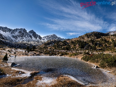 Puzzle Błękitne, Góry, Jezioro, Niebo