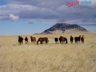 Puzzle Niebo, Konie, Chmury, Góra