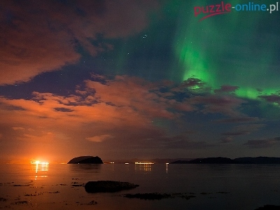 Niebo, Polarna, Morze, Chmury, Zorza