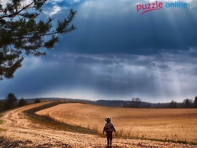 Niebo, Dziecko, Pole, Droga, Dziewczynka