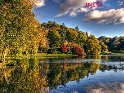 Niebo, Jesień, Jezioro, Drzewa, Chmury