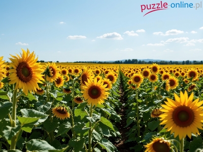 Puzzle Drzewa, Słoneczniki, Pole, Niebo