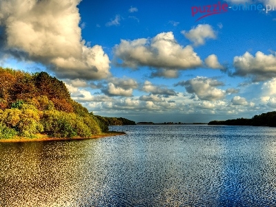 Puzzle Niebo, Rzeka, Drzewa, Chmury