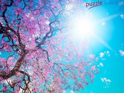 Niebo, Słońca, Kwitnące, Drzewo, Promienie