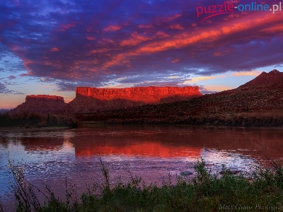 Niebo, Poświata, Jezioro, Góry, Czerwona
