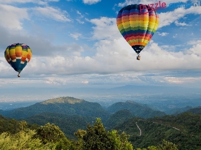 Puzzle Niebo, Krajobraz, Góry, Balony