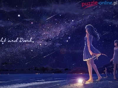 Niebo, Noc, Anime, Dziewczyny, Gwiazdy, Plaża