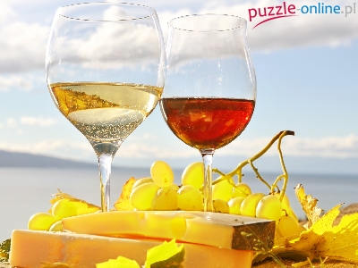 Kieliszki, Niebo, Tło, Ser, Wino, Winogrona, Rozmyte