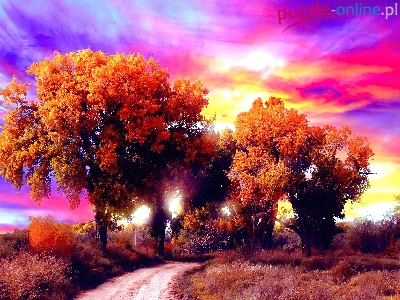Puzzle Niebo, Drzewa, Kolorowe, Jesień