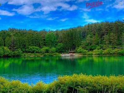 Puzzle Las, Niebo, Jezioro