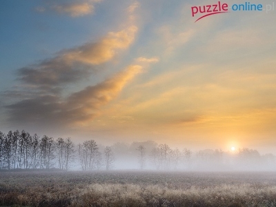 Puzzle Niebo, Łąka, Mgła, Drzewa