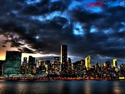 Puzzle Niebo, Nowy Jork, Nocą, Woda
