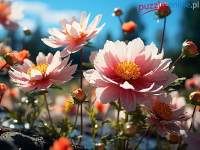 Puzzle Pąki, Kwiaty, Różowe, Niebo