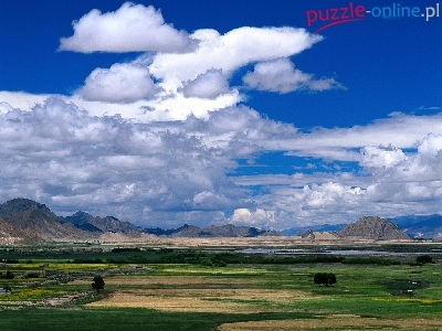 Pola, Niebo, Obłoki, Gór, Rozległe, Szczyty, Białe
