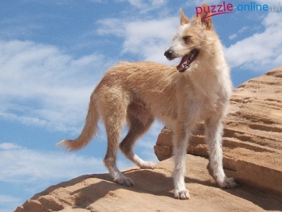 niebo, Podengo portugalski, skały Podengo portugalski, piasek