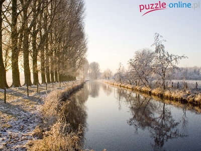 Puzzle Niebo, Drzewa, Rzeka, Bezchmurne