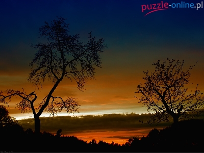 Puzzle Niebo, Zachód, Słońca, Drzewa