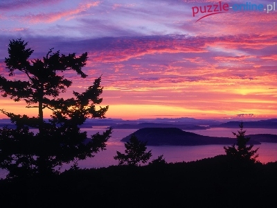 Puzzle Niebo, Zachód, Słońca, Jezioro