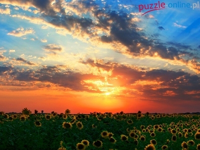 Puzzle Niebo, Zachód, Słońca, Słoneczniki