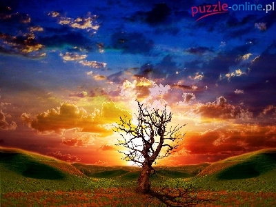 Puzzle Niebo, Drzewo, Trawa, Chmury