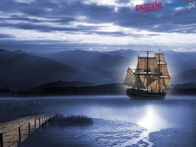 Puzzle Niebo, Żaglowiec, Woda, Pomost