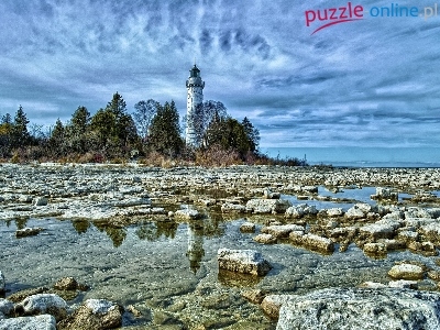 Niebo, Morska, Kamienie, Zachmurzone, Latarnia