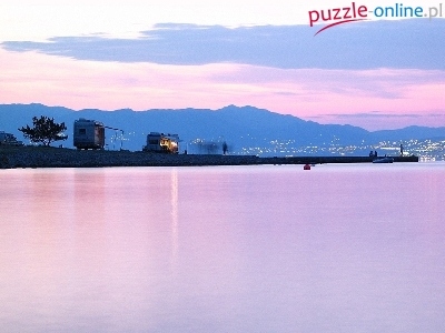 Puzzle Niebo, Góry, Morze, Zachód Słońca