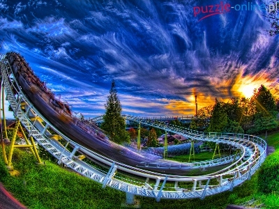 Puzzle Niebo, Luna Park, Kolejka, Zachód Słońca