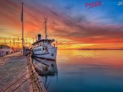 Puzzle Niebo, Morze, Statek, Zachód słońca