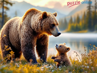 Puzzle Niedźwiadek, Niedźwiedź brunatny, Mały, Jezioro