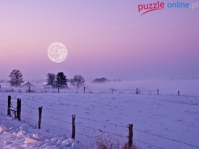 Śnieg, Zmierzch, Księżyc, Zima, Pola, Mgła