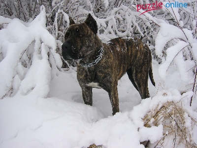 Puzzle Śnieg, Perro de Presa Canario, Zima