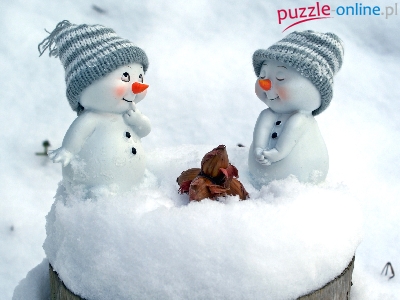 Puzzle Bałwanki, Śnieg, Czapeczki