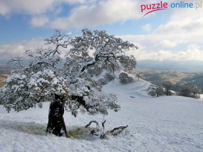 Puzzle Drzewo, Śnieg, Wzgórze