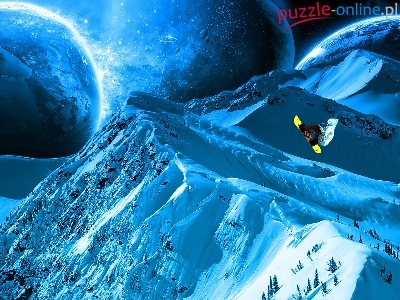 Puzzle Góry, Śnieg, Snowbordzista