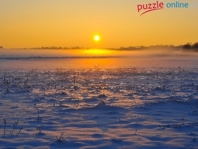 Puzzle Zachód, Śnieg, Słońca