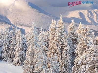 Śniegiem, Promienie Słońca, Góry, Pokryte, Choinki