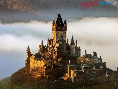 Puzzle Niemcy, Zamek Reichsburg, Miasto Cochem, Mgła