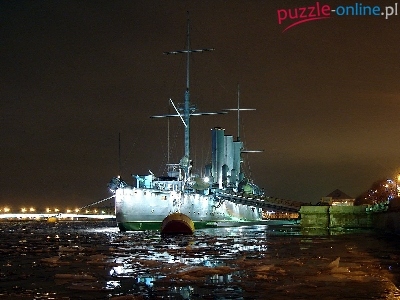 Puzzle Noc, Okręt, Aurora, Światła