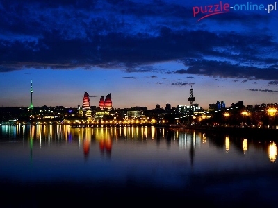 Noc, Odbicie, Miasto, Baku, Swiatła