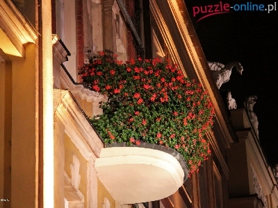 Noc, Balkon, Starówka, Ukwiecony, Budynki, Poznań