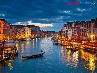 Puzzle Noc, Wenecja, Gondola, Światła