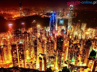 Puzzle Światła, Hong Kong, Noc, Wieżowce