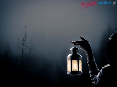 Puzzle Noc, Kobieta, Lampion, Mgła