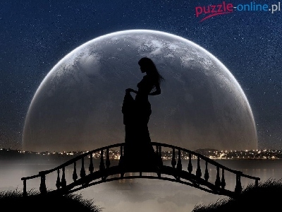 Puzzle Noc, Dziewczyna, Mostek, Księżyc