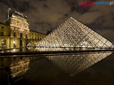 Noc, Odbicie, Luwr, Muzeum, Woda