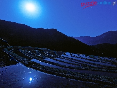 Noc, Niebo, Pola, Ryżowe, Księżyc