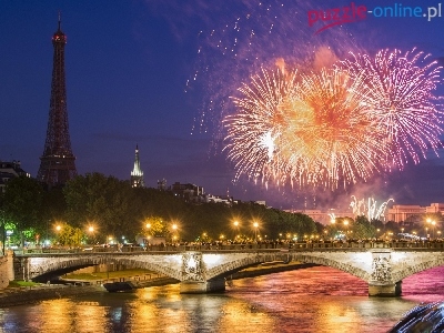 Rzeka, Fajerwerki, Francja, Noc, Most, Sekwana, Paryż